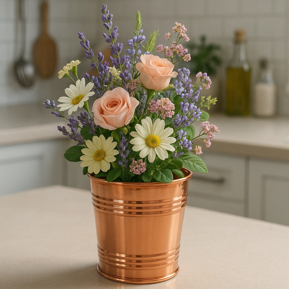 Balde de Cobre Puro Porta Objetos, Flores e Lixinho Multiuso