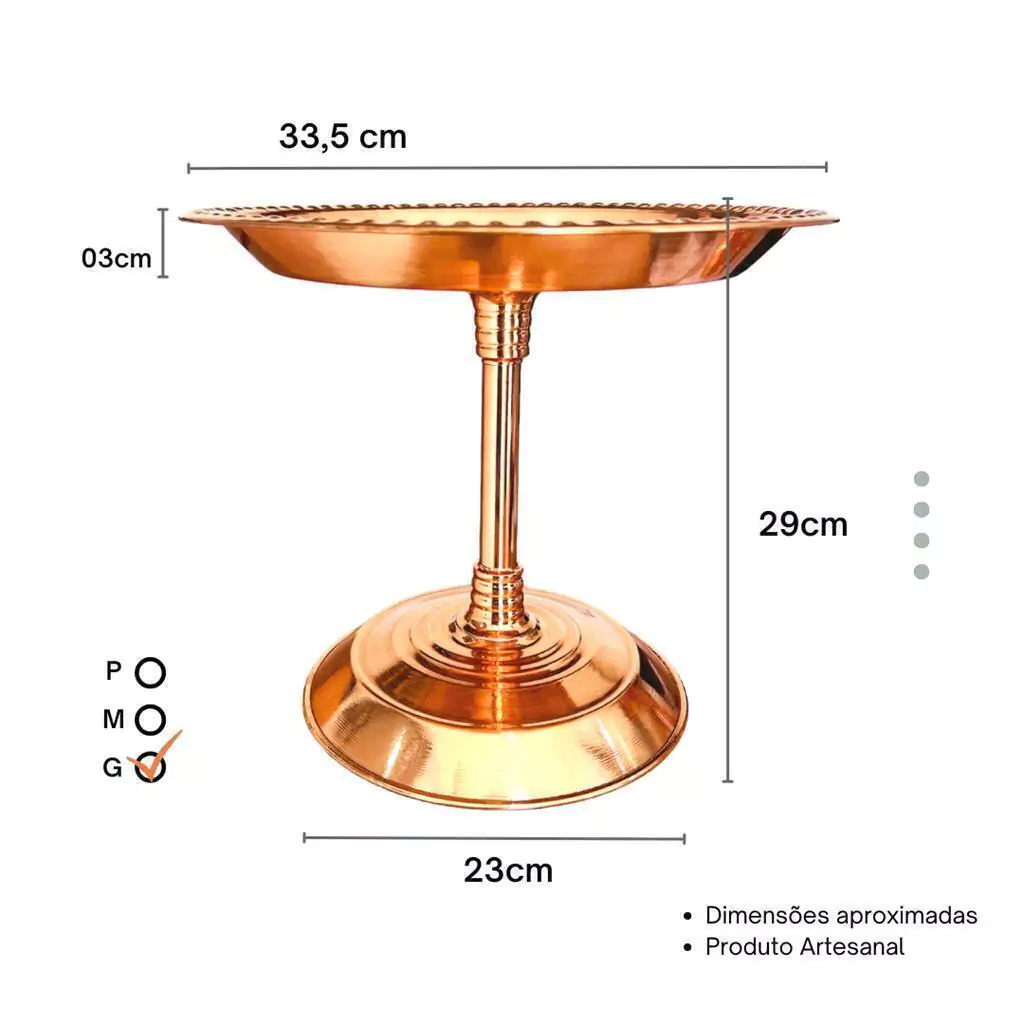 Design Exclusivo e Funcionalidade Cada bandeja é feita de cobre puro, um material nobre que não apenas brilha, mas também adiciona um toque de opulência a qualquer ambiente. A superfície lustrosa reflete a luz de maneira encantadora, criando um jogo de sombras que impressiona. Se você busca uma peça para servir, exibir ou decorar, essa bandeja é a escolha perfeita.