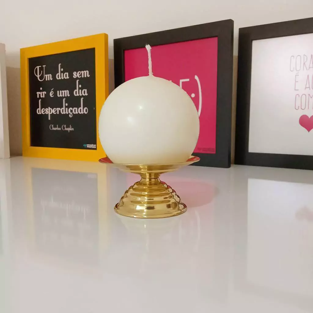 Características: - Material: Metal Latão Dourado - não é banhado, garantindo durabilidade. - Comporta velas menores que 8 cm de diâmetro. - Altura: 4 cm | Diâmetro da base: 6 cm | Diâmetro superior: 8 cm.