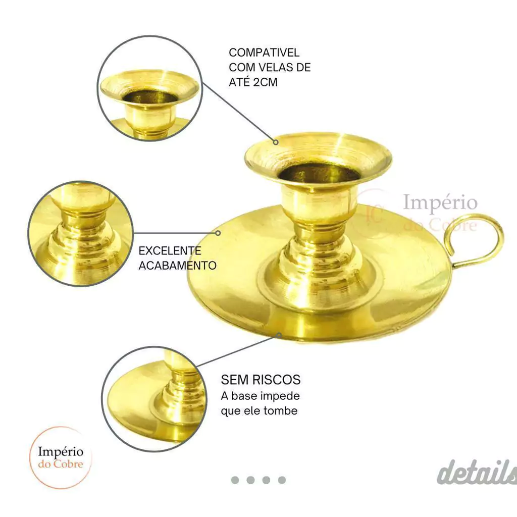 Especificações: - Material: Latão impermeabilizado - Diâmetro total: 7 cm - Altura: 3,5 cm - Abertura para vela: 2 cm