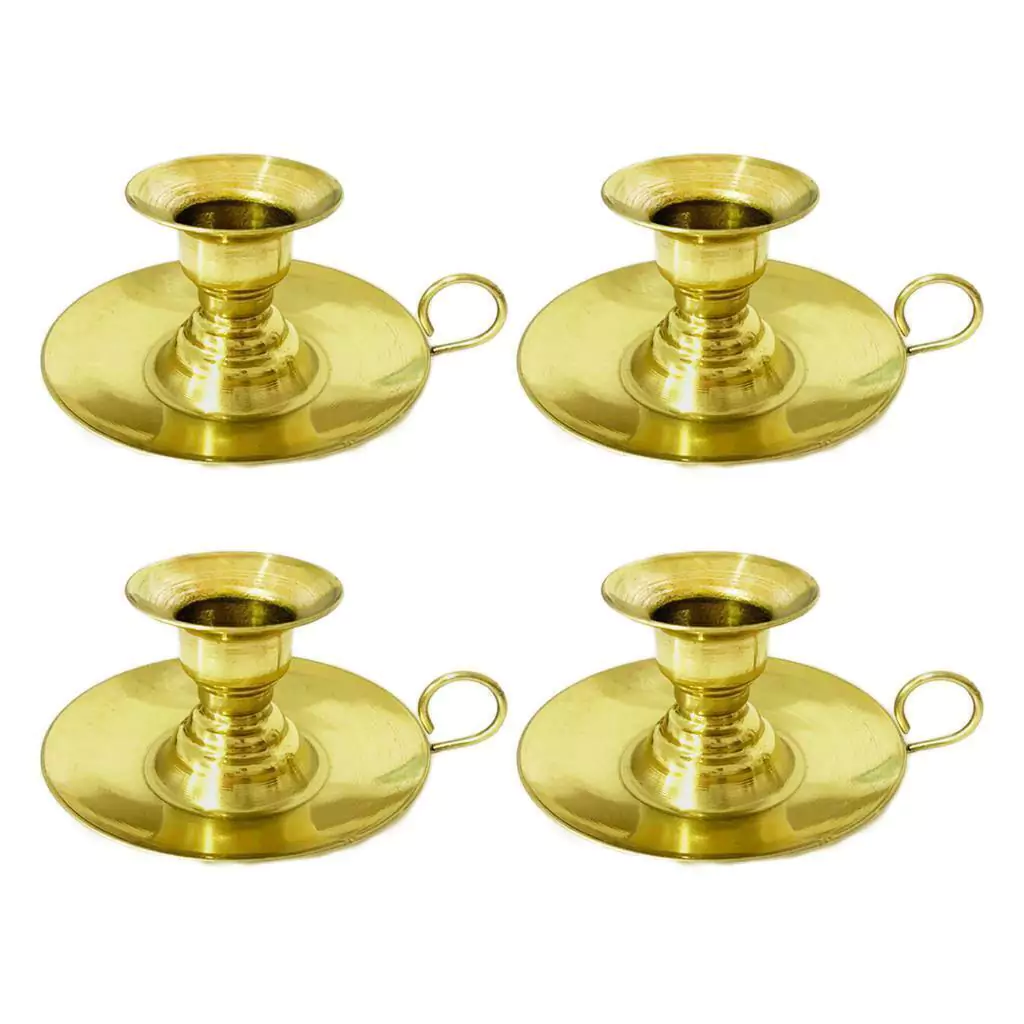 Castiçal Prato Dourado Kit com 4 Unidades: Elegância que Ilumina seu Ambiente