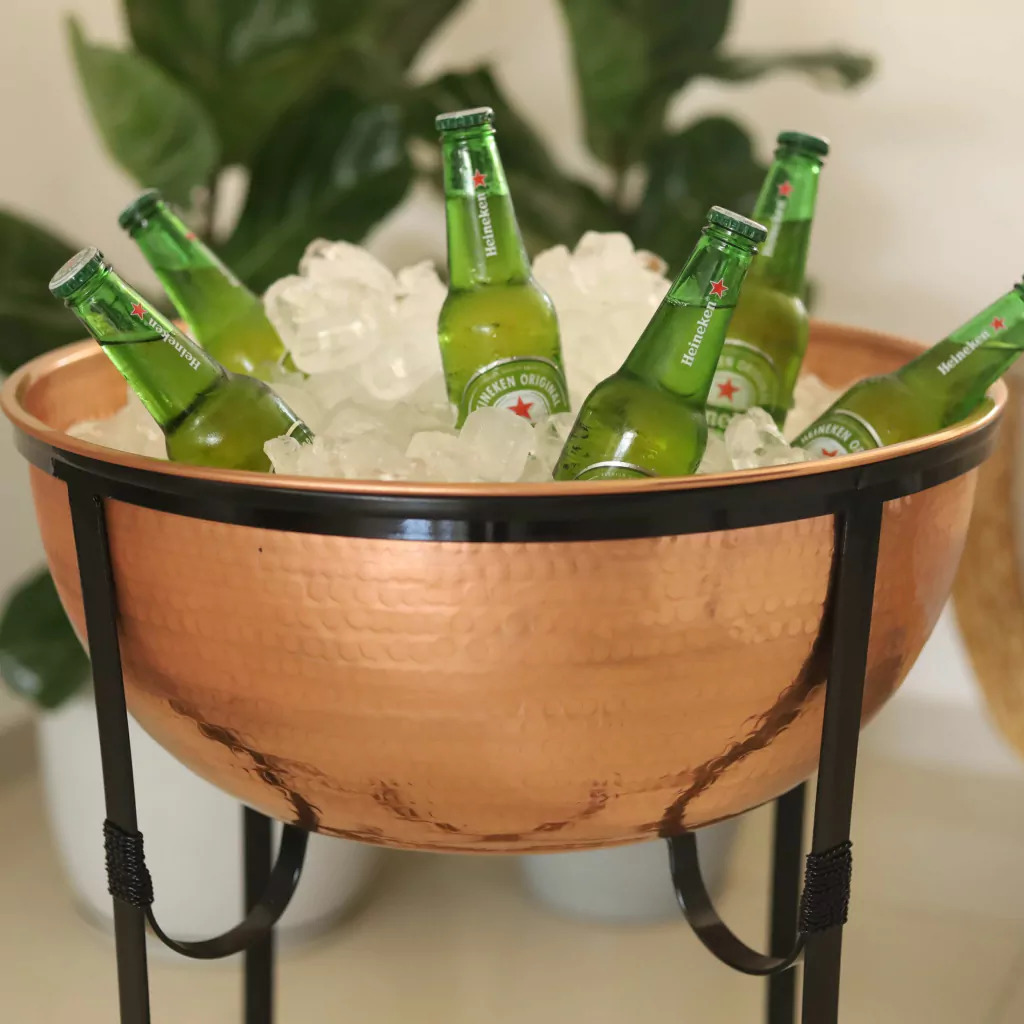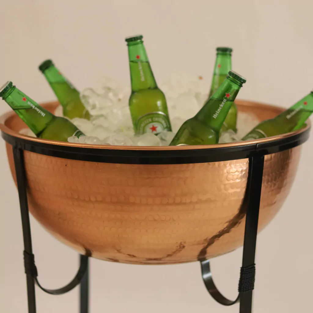 Transforme seus momentos em celebrações inesquecíveis com a nossa Champanheira Cervejeira em Cobre Classic! Esta peça deslumbrante, feita de cobre puro de altíssima qualidade, é a escolha perfeita para quem busca sophisticação e funcionalidade em eventos especiais ou no conforto do lar.