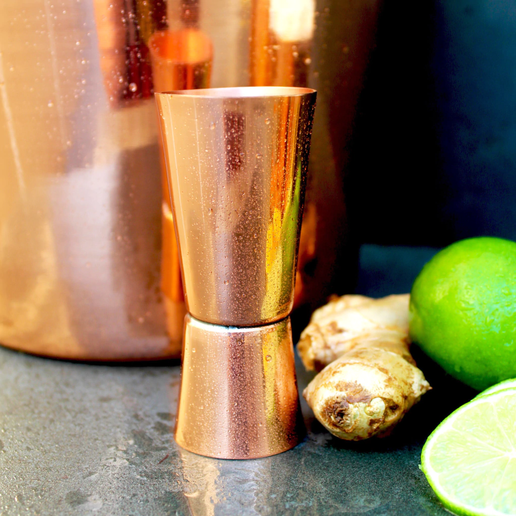 Características principais: - Dosador duplo com capacidade para 25 ml e 50 ml, perfeito para dosagens precisas. - Material resistente e de alta qualidade: cobre puro impermeabilizado que assegura durabilidade e brilho. - Fácil de guardar, leve e compacto. - Acabamento impecável em alto brilho que valoriza sua bancada.