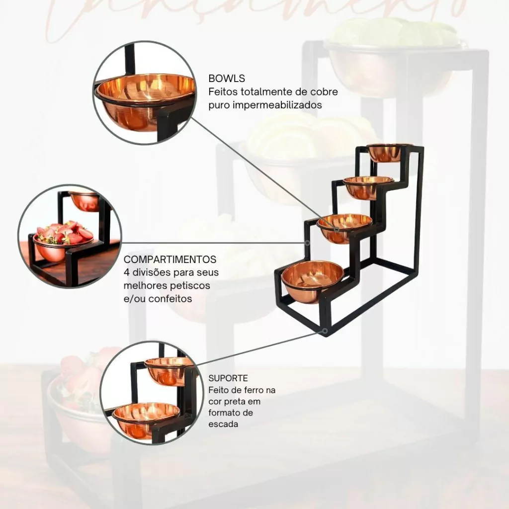 A Fruteira de Cobre 4 Níveis não é apenas um utensílio, mas uma peça que traz sofisticação e funcionalidade à sua mesa. Adquira já a sua e transforme seus momentos à mesa em experiências inesquecíveis!