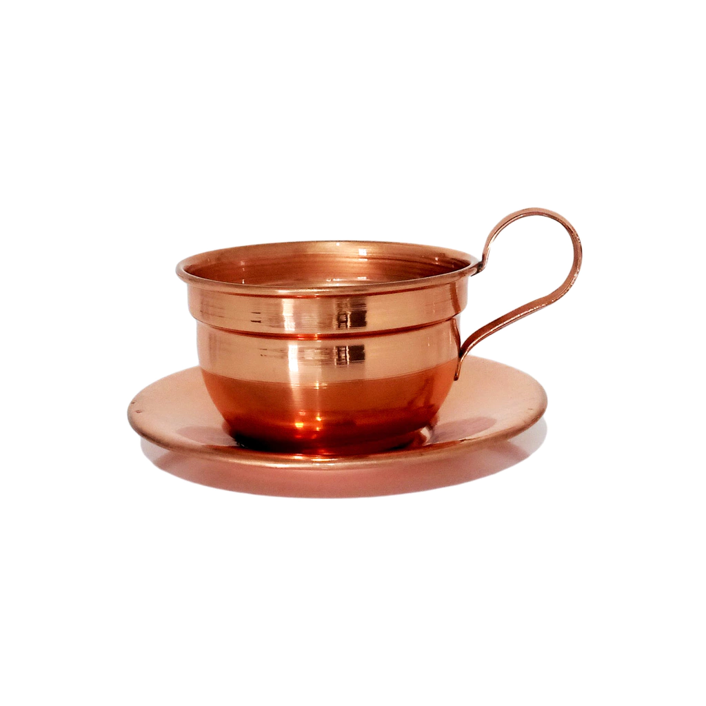Desperte seus sentidos com o Jogo de 4 Xícaras com Pires em Cobre Puro, a escolha perfeita para quem aprecia a arte de servir café ou chá de forma elegante e sofisticada. Feitas à mão com cobre puro, cada xícara proporciona um toque especial ao seu ritual de bebidas.