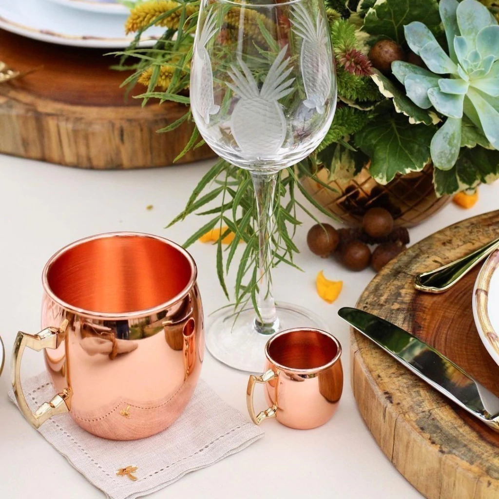 Eleve a experiência do seu Moscow Mule com este kit exclusivo de duas canecas feitas em cobre puro laqueado, com alças em bronze, especialmente desenvolvidas para manter a temperatura perfeita do seu drink por muito mais tempo. Com capacidade de 500 ml, cada caneca é a escolha ideal para quem valoriza qualidade, estilo e tradição na hora de servir.