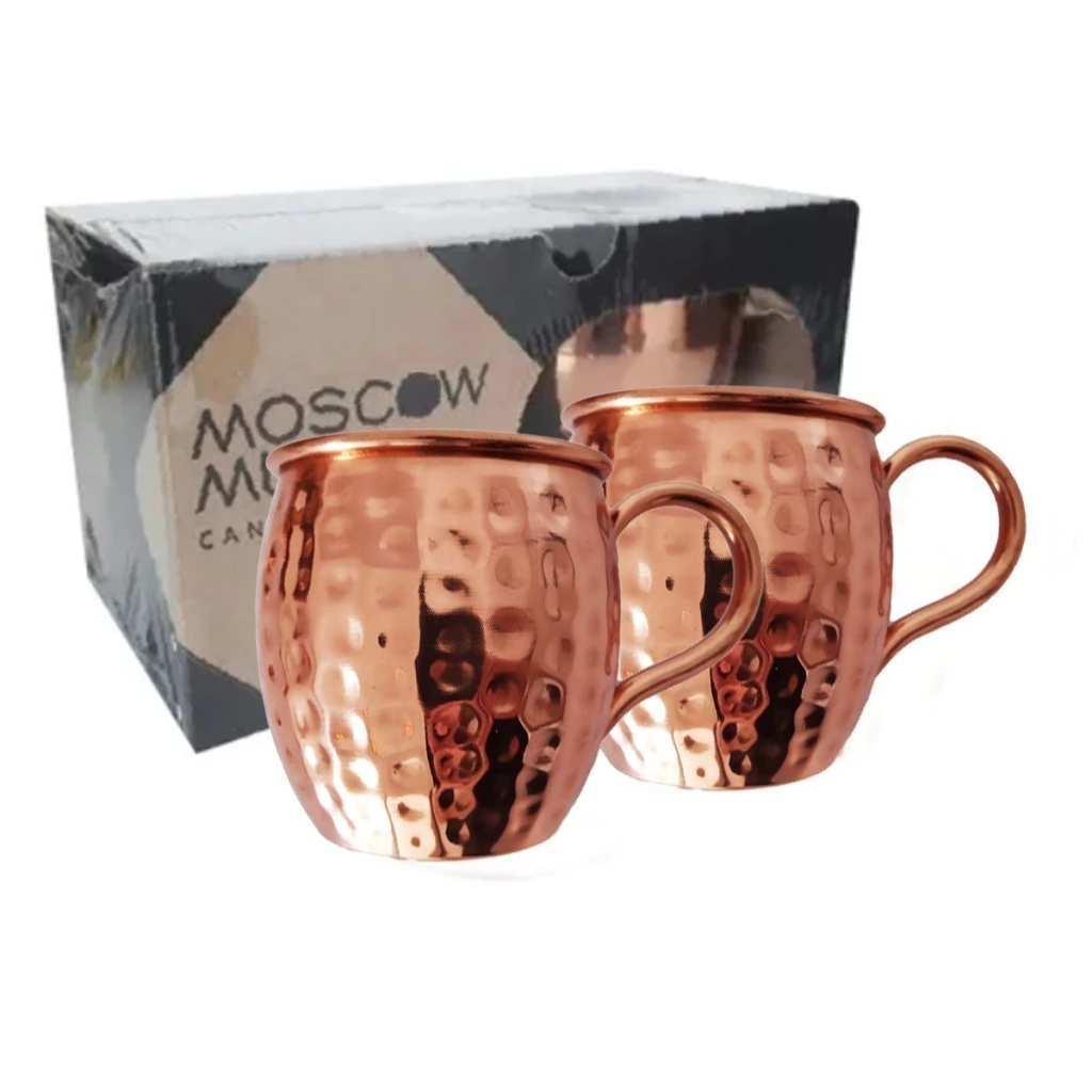 Eleve a experiência do seu momento de lazer com o Kit 2 Canecas Moscow Mule em Cobre Puro 500 ml Marteladas, a escolha perfeita para quem aprecia um drink clássico com estilo e funcionalidade. Essas canecas são feitas artesanalmente em cobre puro, um material nobre que combina beleza, higiene e propriedades térmicas excepcionais.