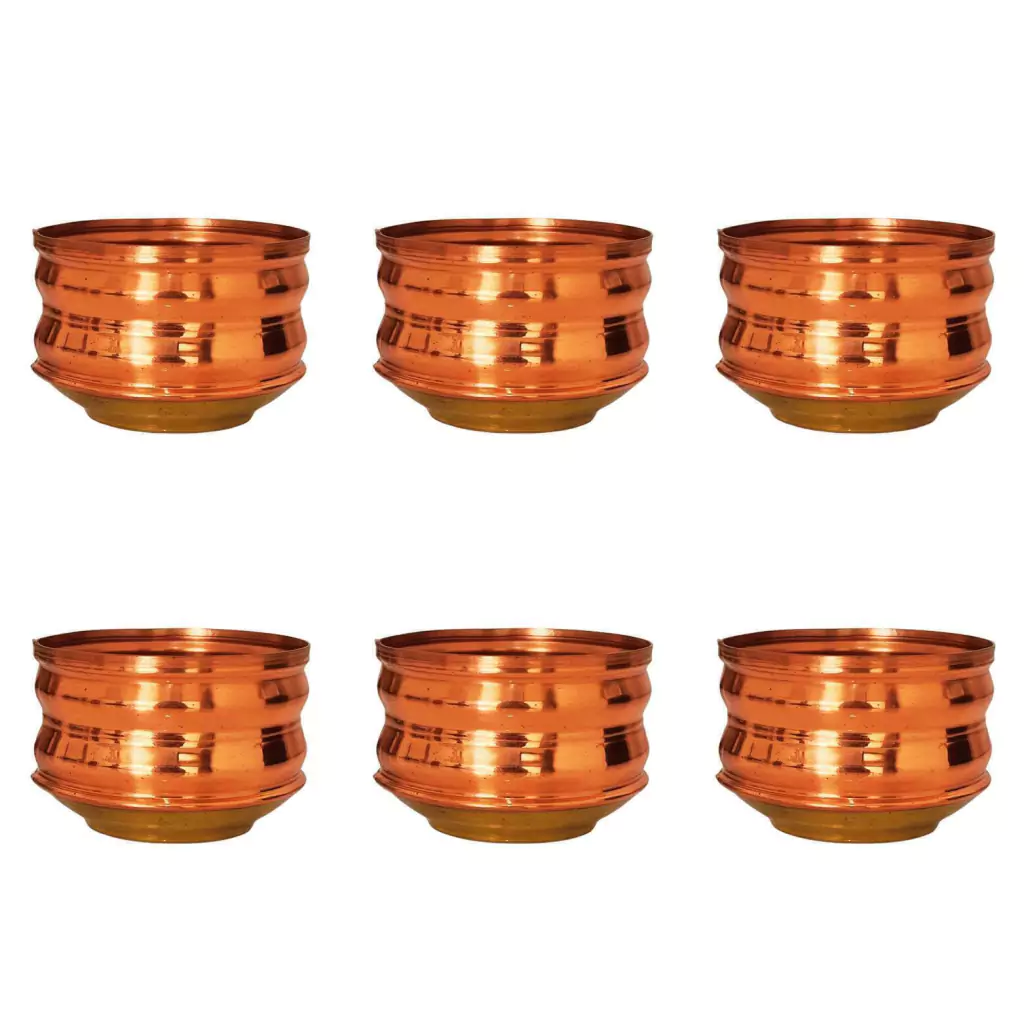 Encante-se com o Kit 6 Cachepôs em Cobre Puro, uma coleção que irradia elegância e sofisticação. Cada peça, com 4cm de altura e 6cm de diâmetro, é moldada com maestria, refletindo a luz de maneira deslumbrante e criando um ambiente acolhedor.