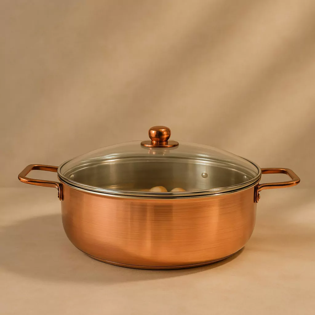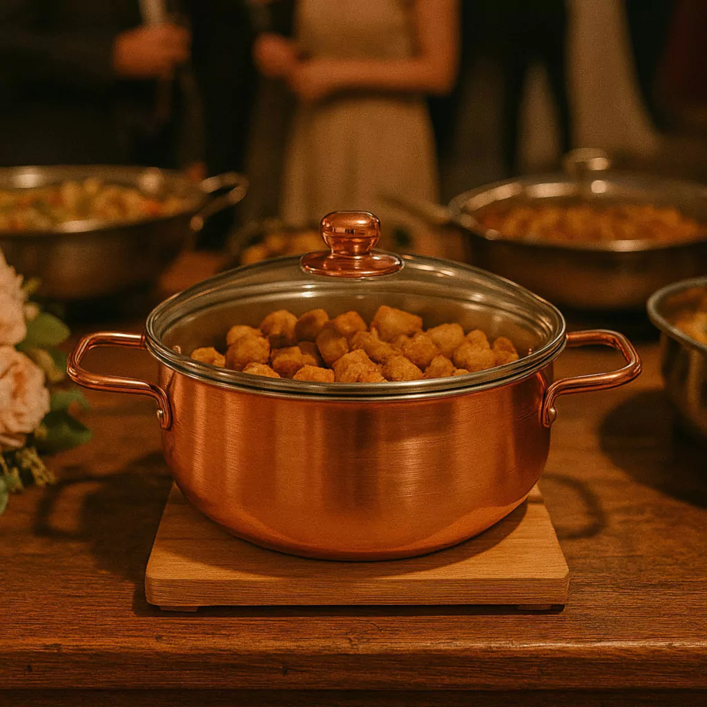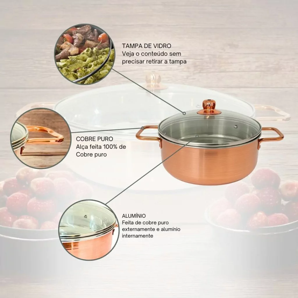 Descubra a exclusividade e sofisticação que a Panela de Cobre Puro Revestida em Alumínio traz para sua cozinha. Com uma capacidade generosa de 4 litros, ela é a escolha perfeita para quem valoriza tradição, qualidade e praticidade em suas receitas diárias.
