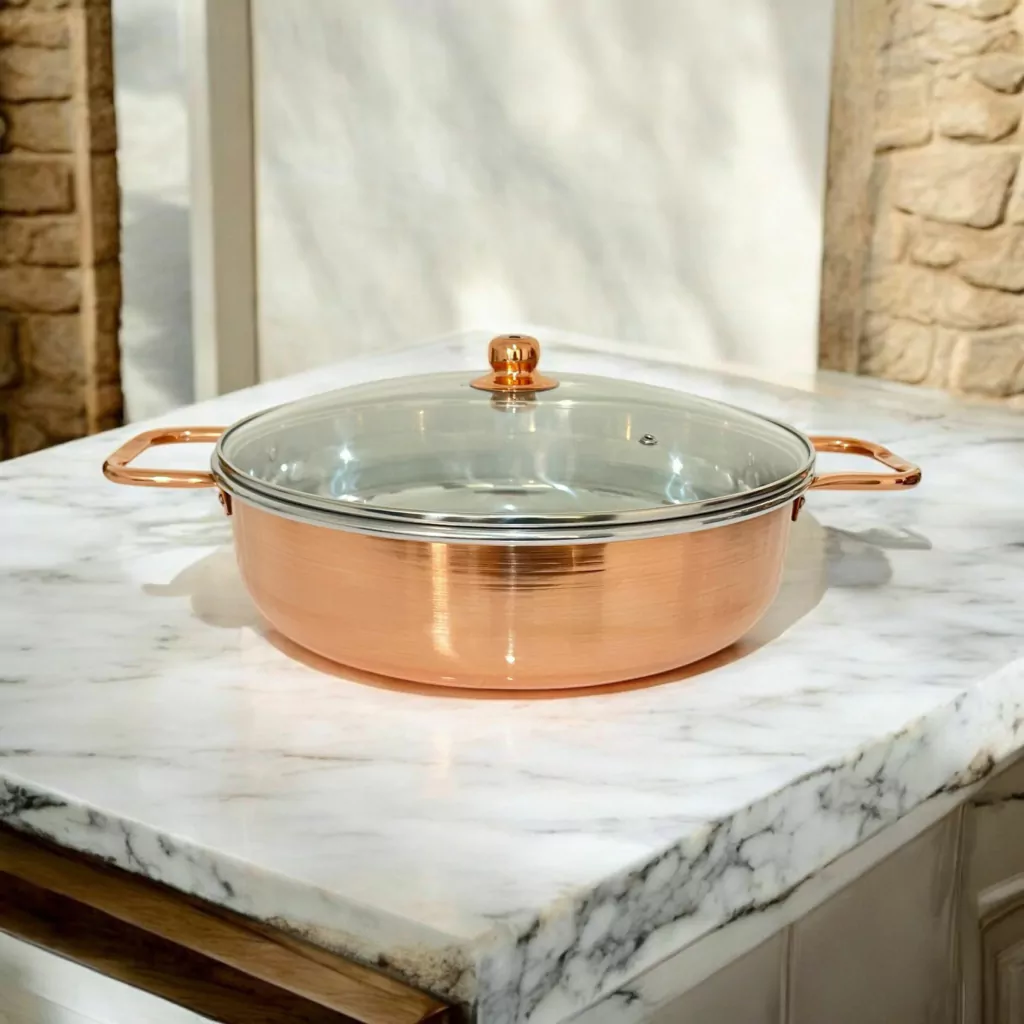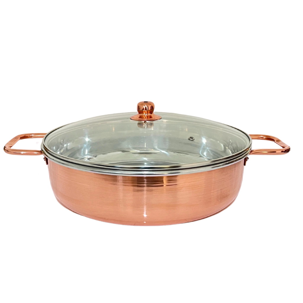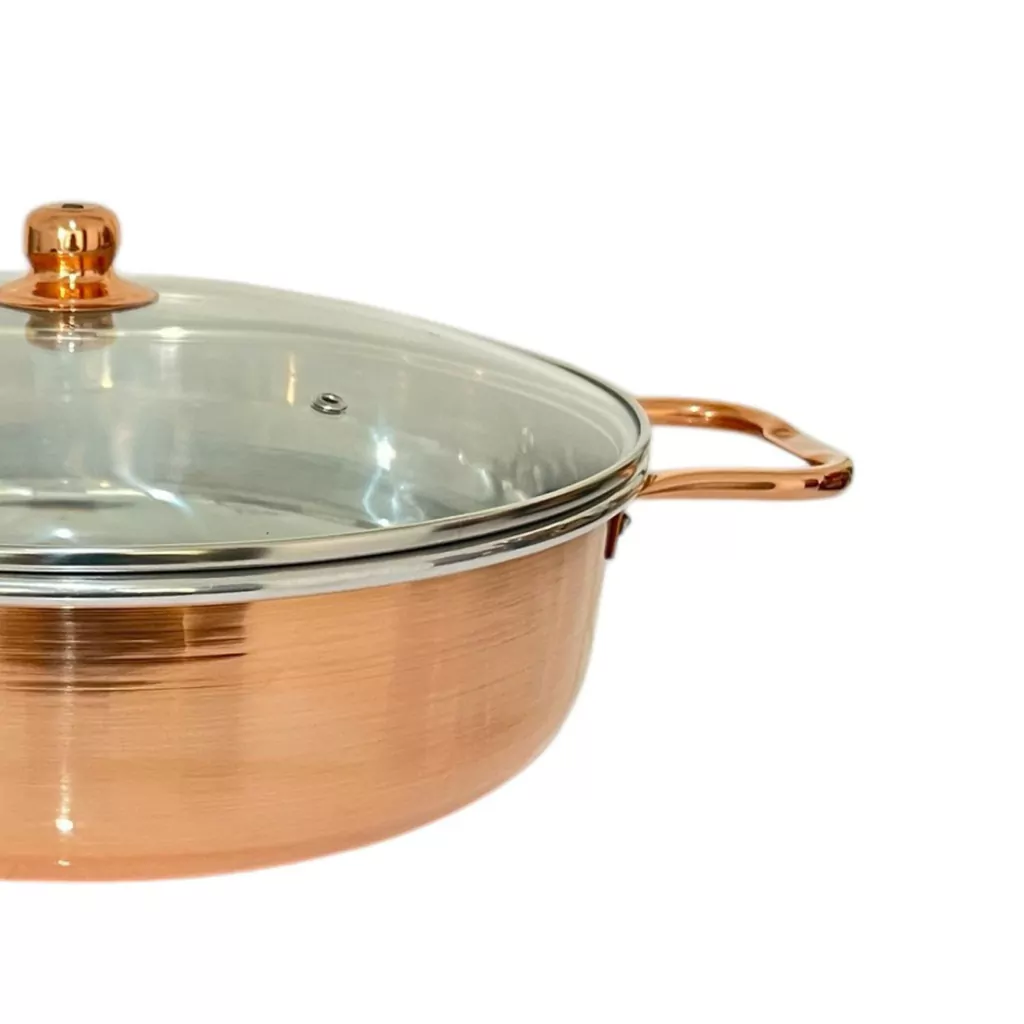 Além da funcionalidade, seu design elegante destaca-se pelo charme do cobre polido, conferindo um toque de luxo e tradição à sua bancada. Acompanha tampa de vidro resistente, que permite acompanhar o preparo sem perder o calor, garantindo resultados incríveis em cada preparo.
