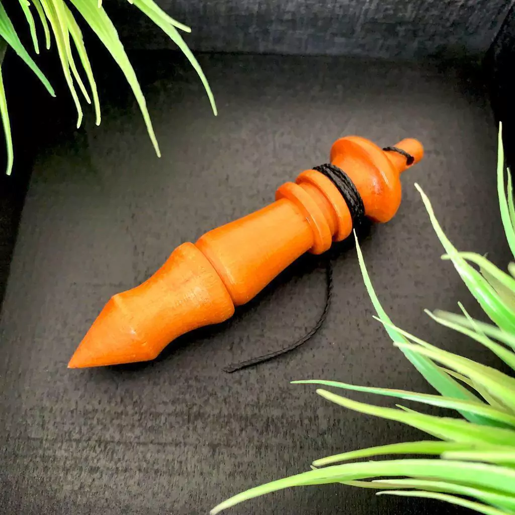 Feito de madeira resistente, o pêndulo proporciona uma sensação natural e confortável em suas mãos. O chumbo centraliza e estabiliza os movimentos, permitindo respostas mais precisas às energias que você está captando. Cada pêndulo é esculpido à mão, resultando em uma peça única, com um acabamento suave que destaca a beleza natural da madeira.