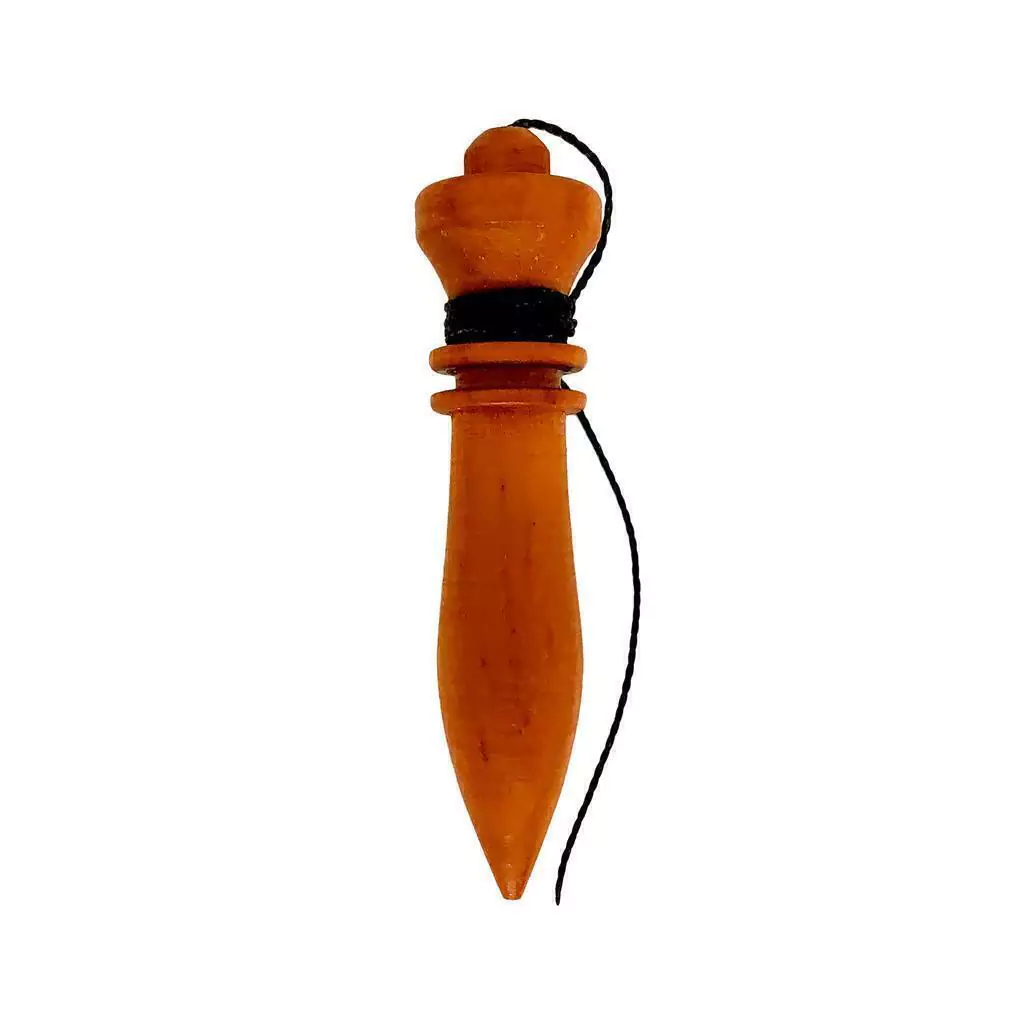 Feito de madeira resistente, este pêndulo proporciona uma sensação natural e confortável em suas mãos. O chumbo no centro é cuidadosamente projetado para equilibrar e estabilizar os movimentos, permitindo uma resposta precisa às energias captadas. O acabamento suave e polido destaca a beleza natural da madeira, tornando cada pêndulo uma peça única.