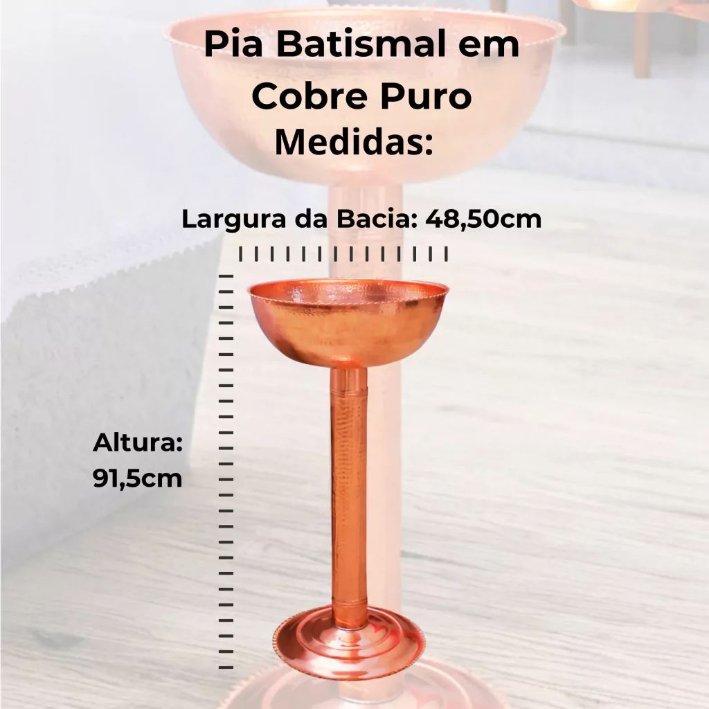 Transforme o momento do batismo em uma cerimônia inesquecível com a Pia Batismal em Cobre Puro da Império do Cobre. Feita artesanalmente com cobre puro, esta peça sagrada une tradição secular, beleza e durabilidade, tornando-se o elemento perfeito para igrejas, capelas e espaços religiosos que valorizam a história e o significado profundo do rito do batismo.