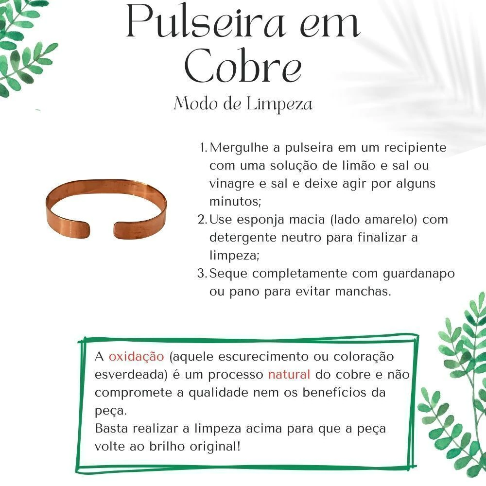 Com o Bracelete de Cobre Puro, você não apenas usa uma joia, mas uma peça que representa arte e tradição. Seja para um evento especial ou para o dia a dia, este bracelete é um verdadeiro símbolo de estilo e individualidade. Não perca a chance de brilhar com um acessório que é tão único quanto você!