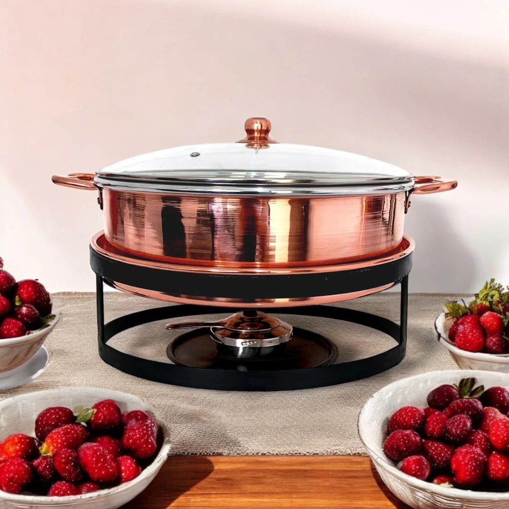 Descubra o Rechaud Cobre Puro 8 Litros da Império do Cobre, a escolha definitiva para quem busca unir elegância, tradição e funcionalidade em eventos, buffets e jantares especiais. Produzido artesanalmente em cobre puro, este rechaud não é apenas um utensílio, mas uma peça de destaque que eleva qualquer ocasião com seu brilho natural e design clássico.