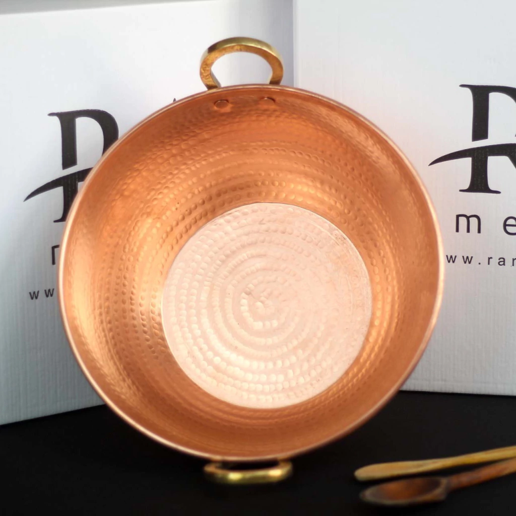 Durabilidade e Resistência: O cobre é um metal de alta resistência, garantindo que seu tacho seja um investimento duradouro na sua cozinha. Além disso, suas propriedades permitem que os alimentos sejam preservados e seu sabor realçado, tornando cada receita uma experiência inesquecível.