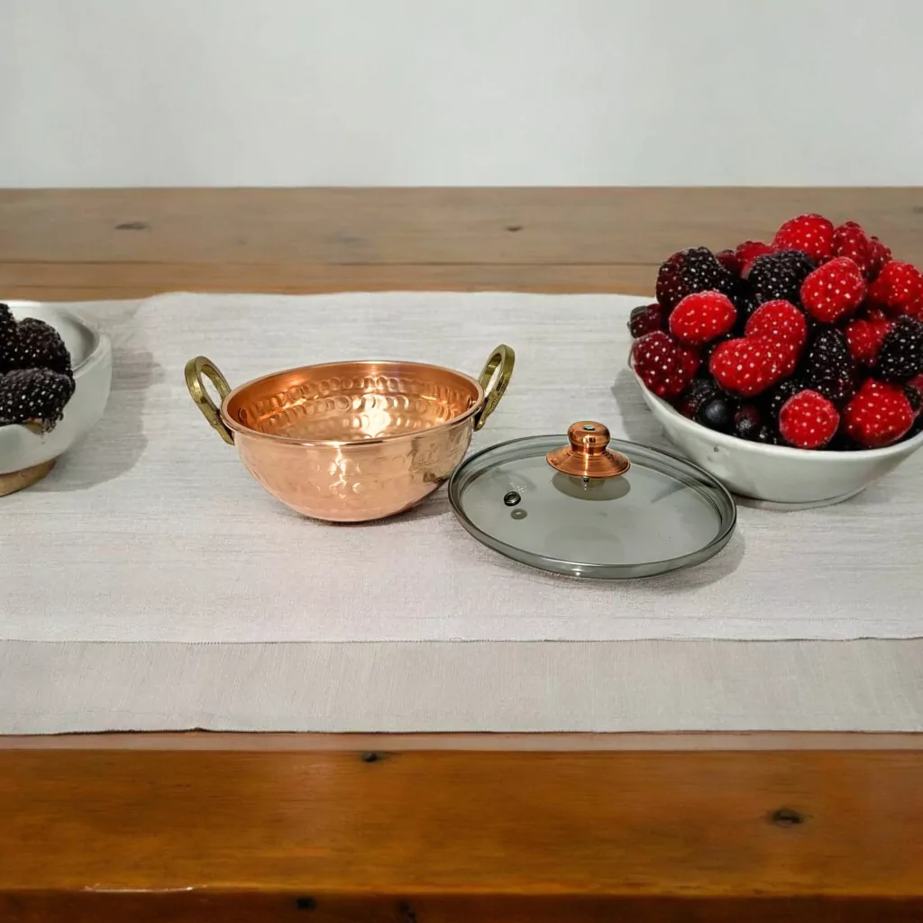 Descubra o charme e a autenticidade da culinária mineira com o nosso Tacho de Cobre Puro com Tampa de Vidro, com capacidade para meio litro (500ml). Produzido artesanalmente pela Império do Cobre, este tacho é mais que um utensílio: é um pedaço da cultura de Minas Gerais para transformar seu preparo de doces e pratos especiais.
